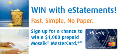 Thank you for your participation in the WIN with eStatements Contest. Congratulations to our winners: When you register for eStatements, you can: review your statements the