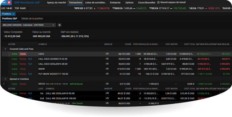 Négociez des options à branches multiples directement sur BMO Investisseur actif. Gagnez du temps en exécutant efficacement des stratégies complexes.